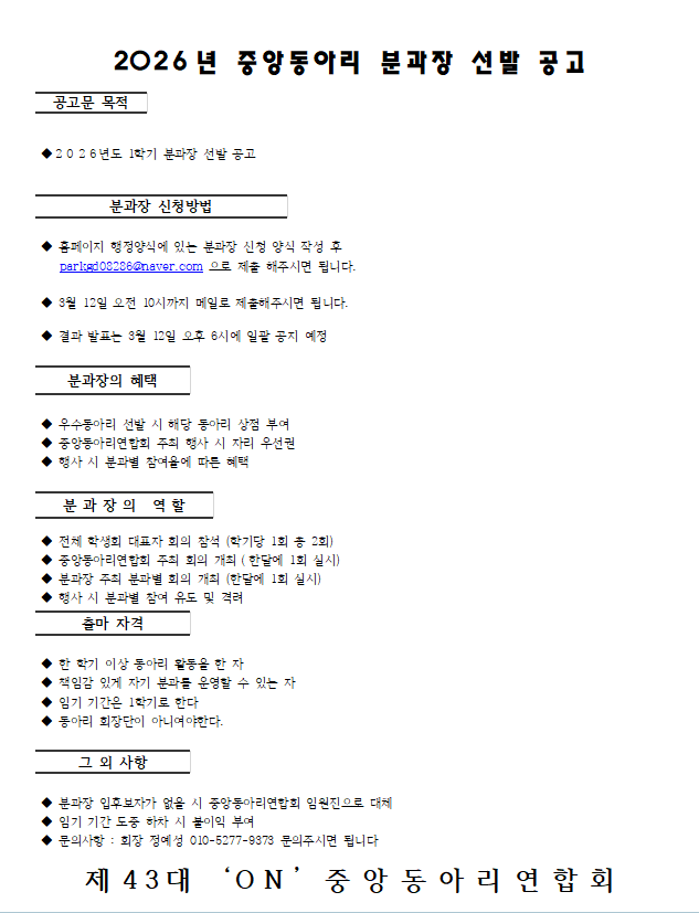 2026Çг⵵ ºÐ°úÀå ¼±Ãâ °ø°í